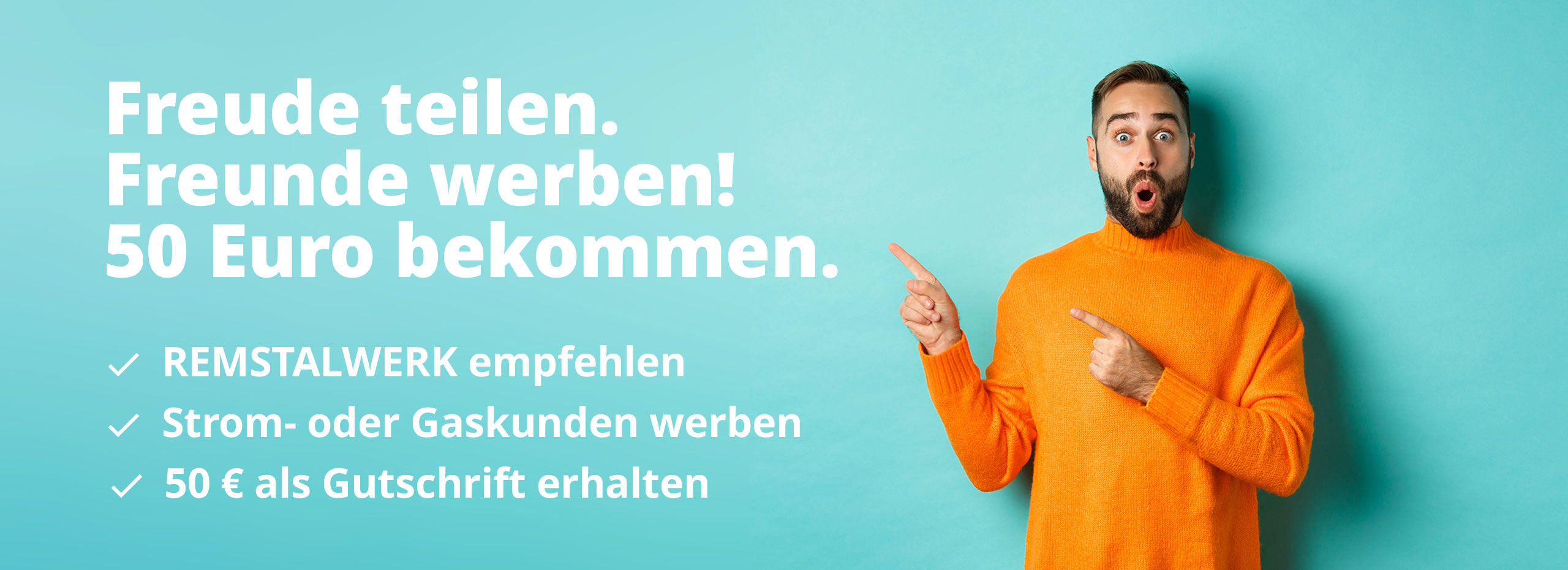 Sie sind zufriedener Kunde? Dann empfehlen Sie uns weiter. Für jeden Neukunden bedanken wir uns mit einer Gutschrift von 50€.