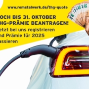 Wenn Sie ein Elektroauto besitzen, sparen Sie beim Fahren CO₂-Emissionen ein. Das wird mit einer Prämie für Treibhausgasminderung belohnt – und das jedes Jahr! Die THG-Prämie einfach HIER beantragen und Geld kassieren. Nach Prüfung und Freigabe durch das Bundesumweltamt zahlt das REMSTALWERK die Prämie auf Ihr Konto aus. Doch aufgepasst, wer sich die Prämie für 2025 noch sichern will: Die Antragsfrist endet am 31. Oktober!