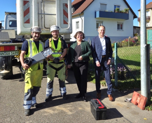 Neue Straßenleuchten: Bürgermeisterin Fehrlen informiert sich über die aktuelle LED-Umrüstung in Urbach